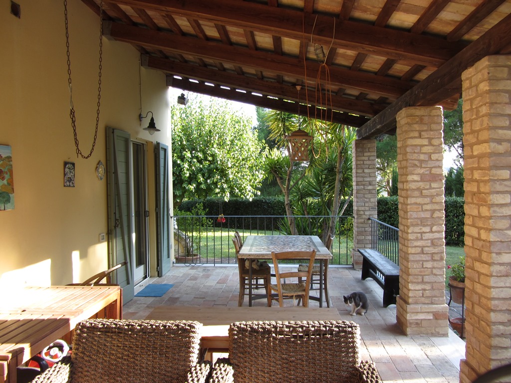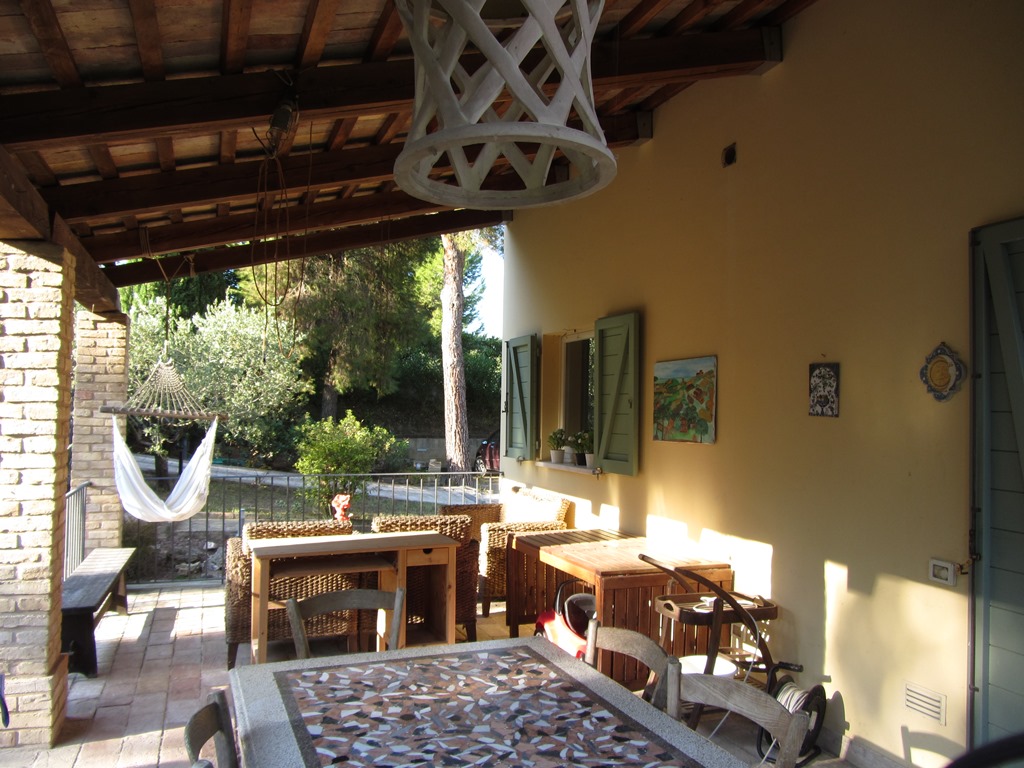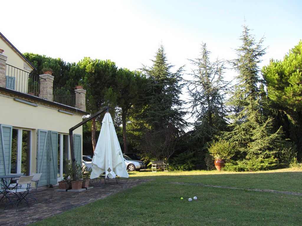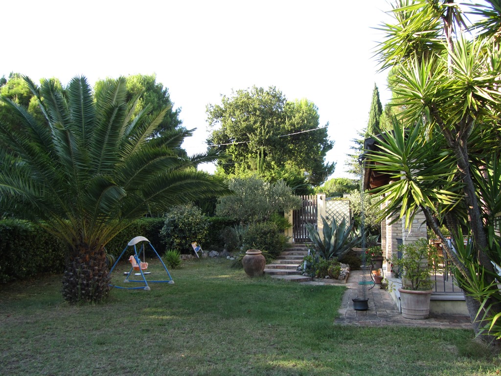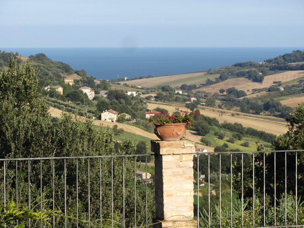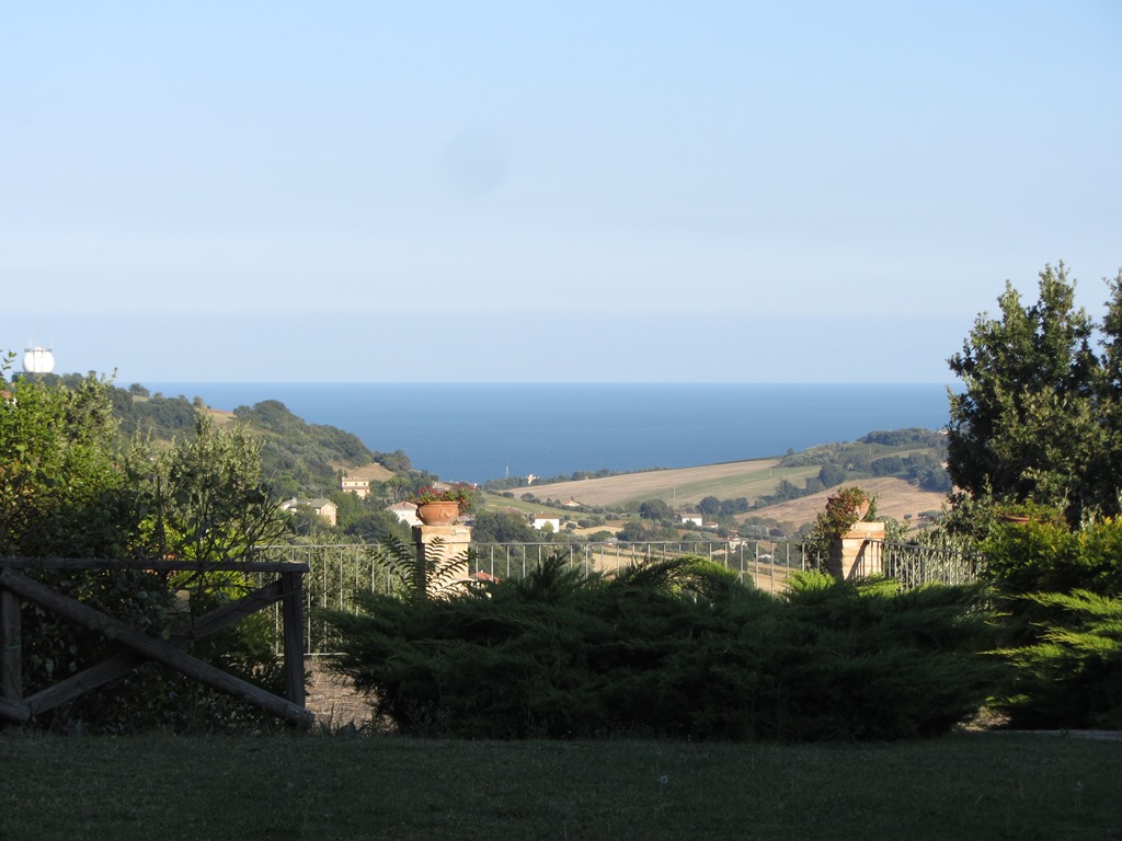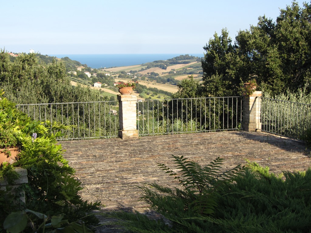 It is located in the municipality of Potenza Picena, a small village that stands on the hillside overlooking the Adriatic Sea and more precisely the coast of Porto Potenza Picena, but the magnificent view includes the hills of Civitanova Alta as far as MonteConero. It can be reached by a provincial road and then for a short stretch by a paved road. It is not isolated due to the presence of other houses and is surrounded by a large garden on various levels, but on the whole flat, surrounded by tall trees suchas oaks, maritime pines and holm oaks, as well as broom, olive trees, bougainvilleas and ancient mulberry trees, covering an area of 3,550 square metres.